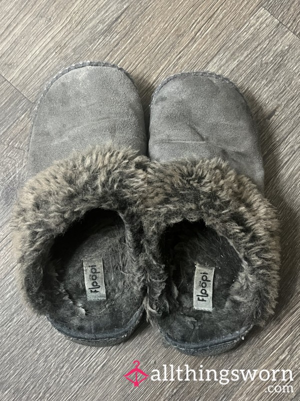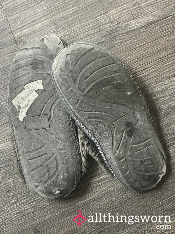 Lovely day worn slippers, ready to slide in...