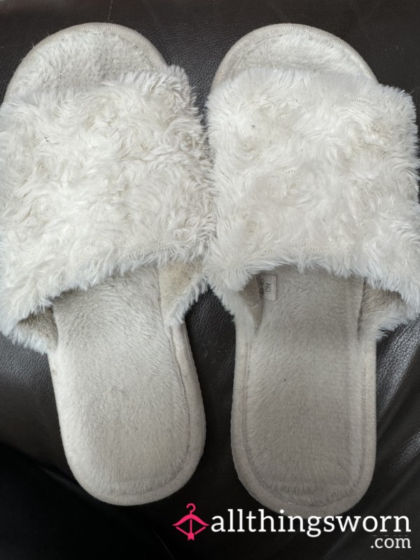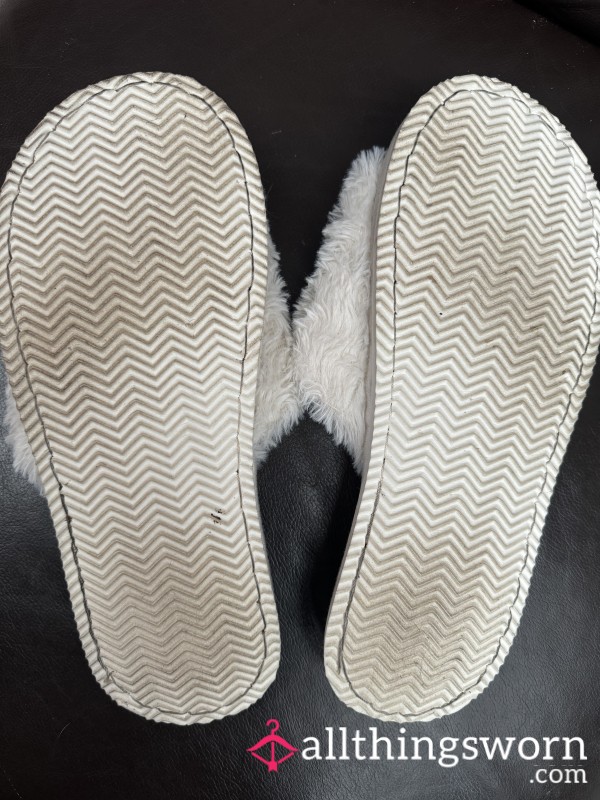 Worn, stinky slippers. I have been wearing these since January. I’m ready for some new ones. Which foot...