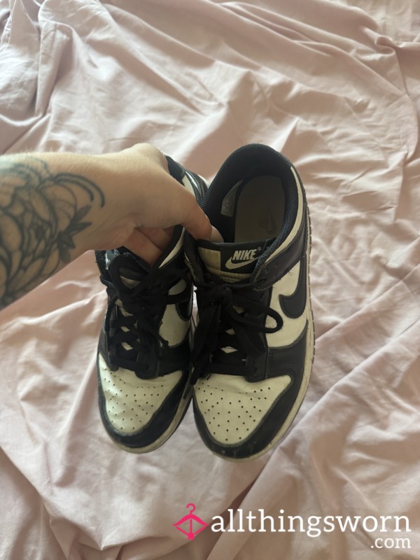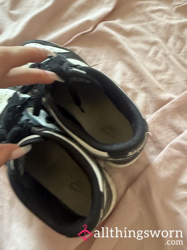 Squished backed red, black & white Jordons nike trainers worn in with & without socks!