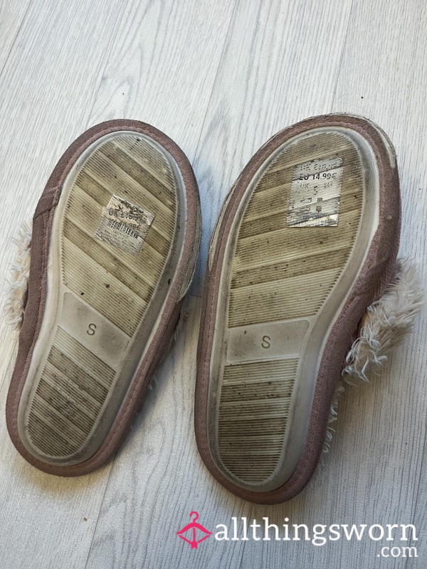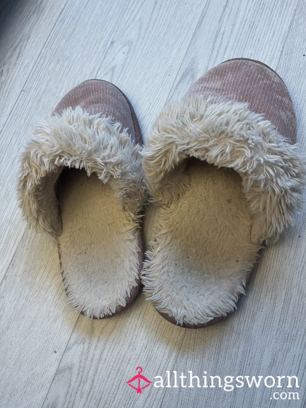 Well-worn pink fluffy smelly slippers