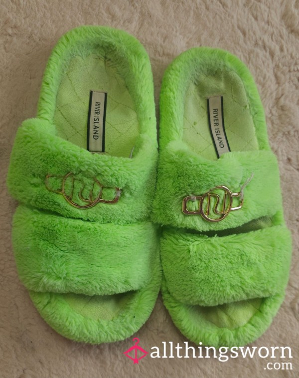 Well worn slippers used about 3 years, very old and smelly perfect for a shoe worshiping slave...
