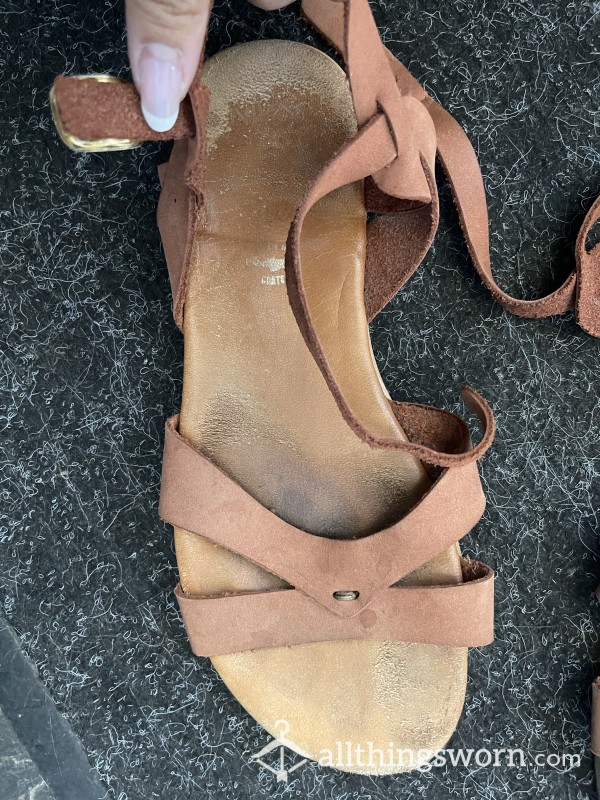 Old worn baby pink pointy shoes...
