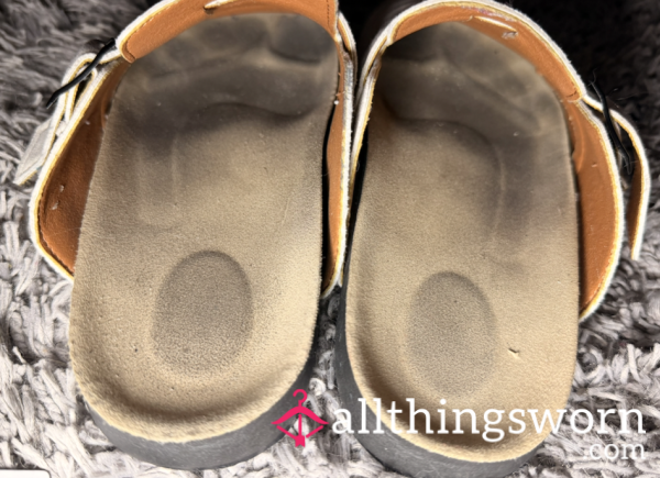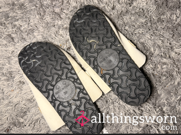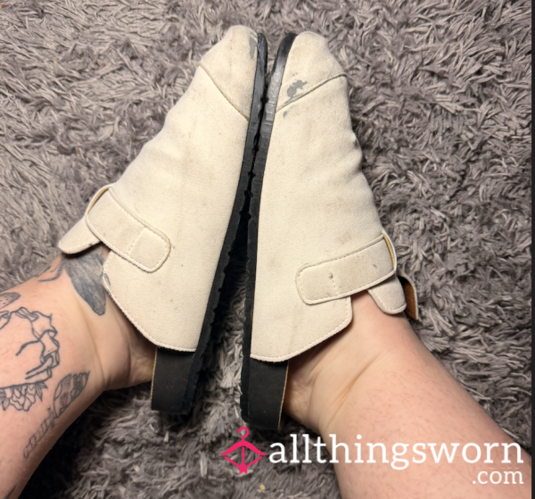 Two-year-old well worn tan Tiek flats! Worn, mostly barefoot and with stockings. If I would have to...