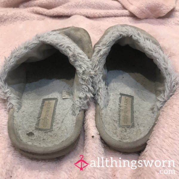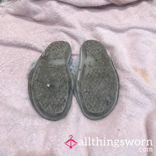 Dirty well used slippers can see my foot and toe marks inside. Still wearing so will get even...