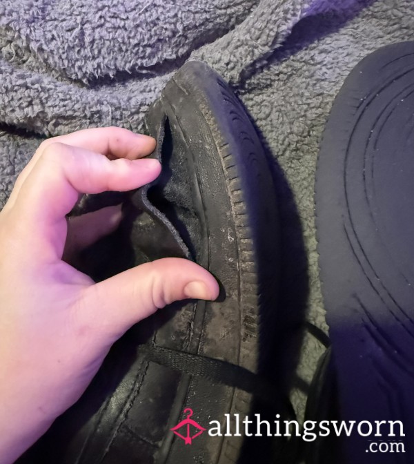 Extremely dirty sneakers from extended wear. Scuffed, well-used, and left completely uncleaned just as worn. Perfect for someone...