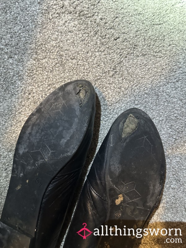 Selling my leather very well worn flat shoes. many hours walked in these serving in a restaurant. Now it could serve You! Size 6