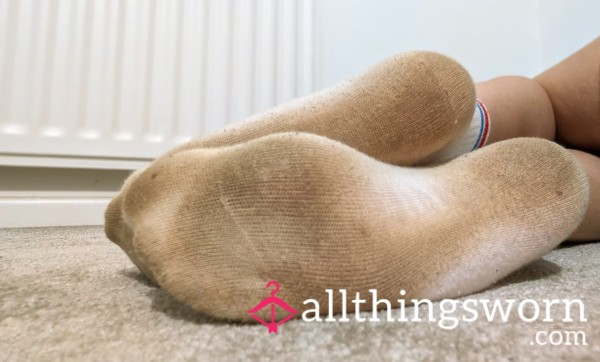 These brown Nike socks were worn to the gym and through my workout, then kept on after.