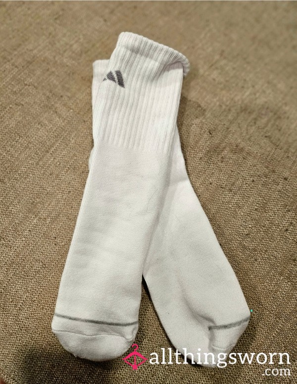 well-worn white socks ready for their next admirer 😉 Soft, comfy, and full of character.worn for two days...