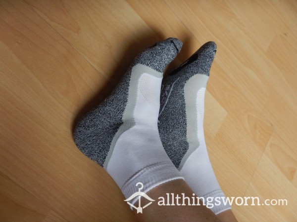 The cutest knee length white socks, worn with some signs of wear. Little details at the top of...