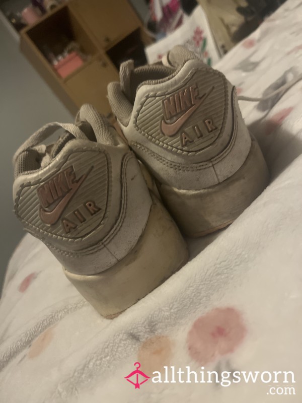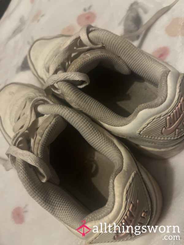 Well worn white McKenzie trainers Worn for many daily runs & hikes Often worn without socks 👀 Foot imprints are easily...