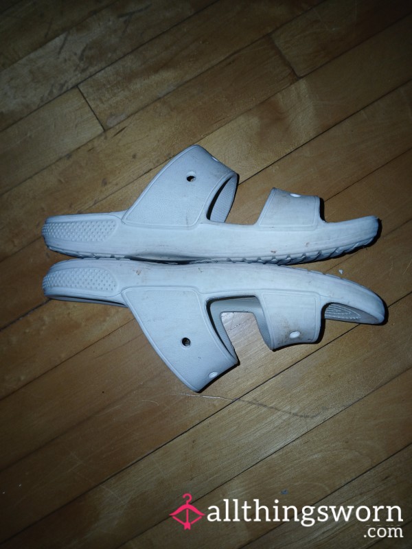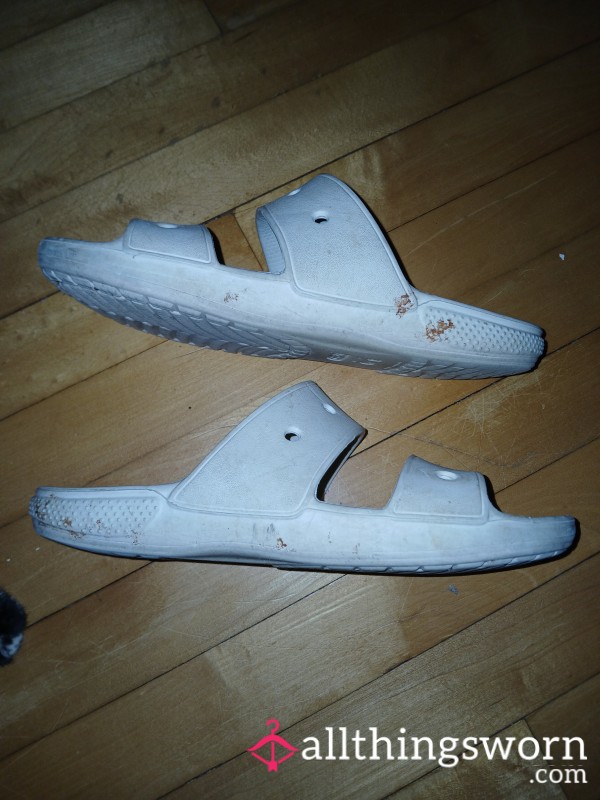 Baby pink furry slippers with a hard bottom only had them for almost a year now 🥵 will...