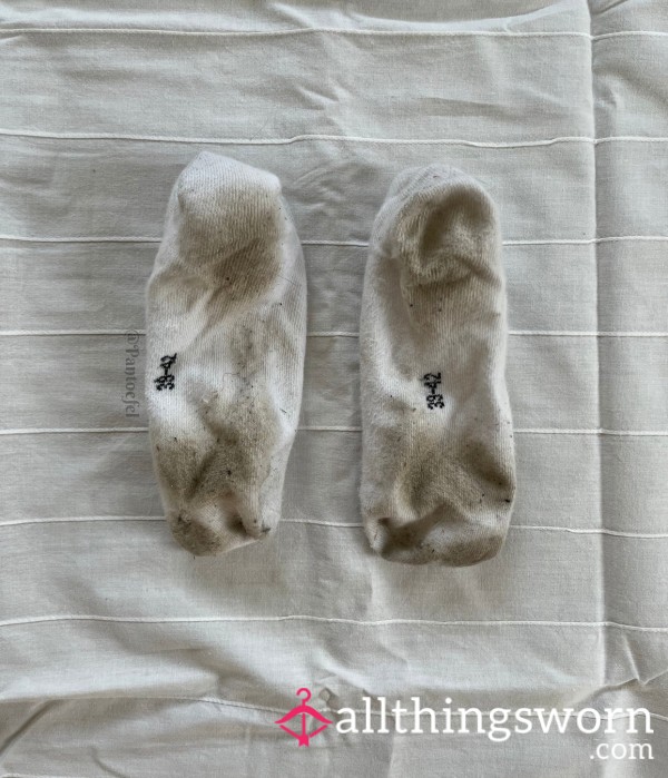 Well worn cla**ic cotton ankle socks with hole on toe area