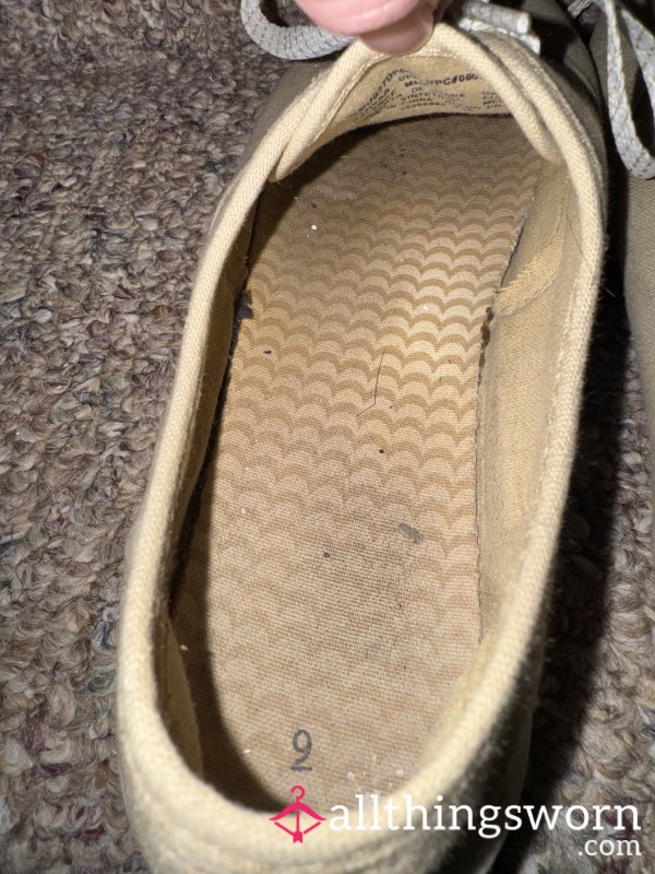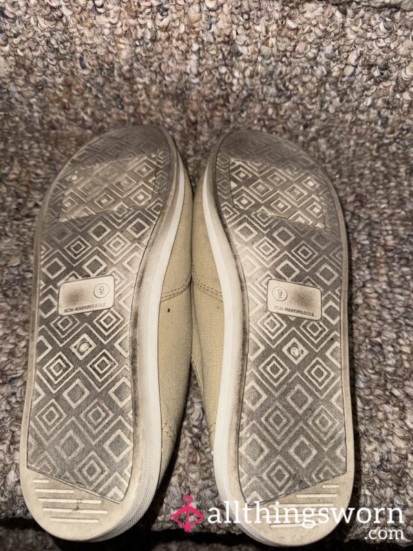 Old well worn office work shoes with a strong feet scent...