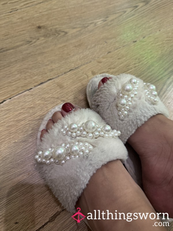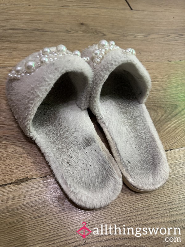 Very work fluffy cream slippers haven’t been washed in 2 years...