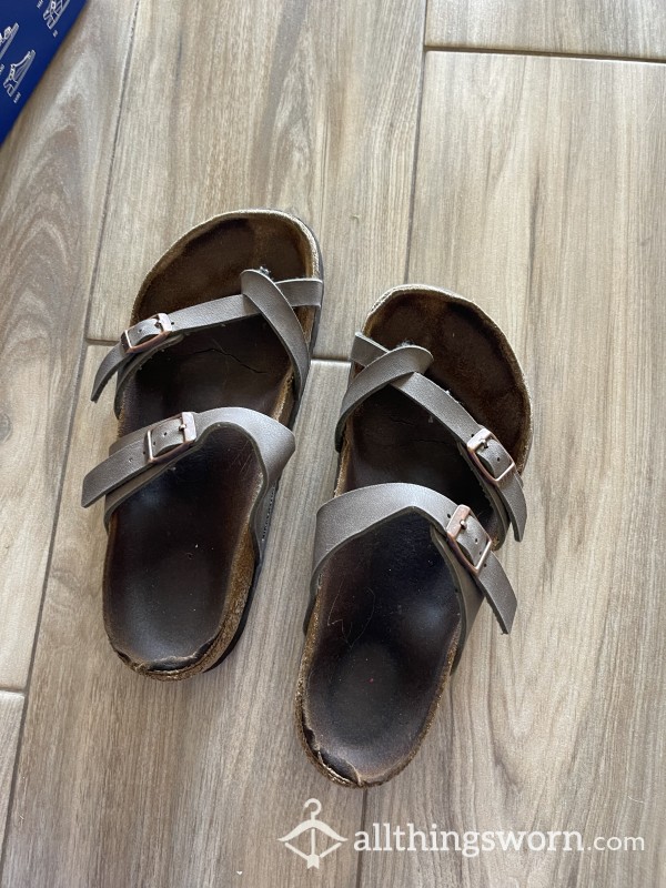 Very well worn sandals size 6, made of thick brown rubber! Worn loads in the summer when my...