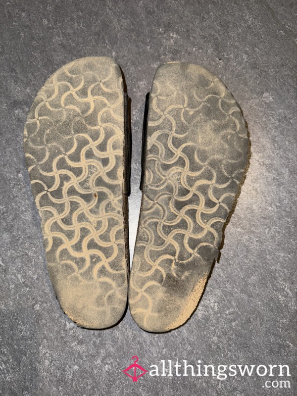 Well worn black sandals size 5. Worn constantly in summer holding on to my sweaty feet....