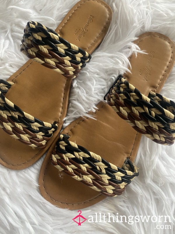 American Eagle well worn leather (probably faux) sandals. They absolutely smell disgusting to be honest!...