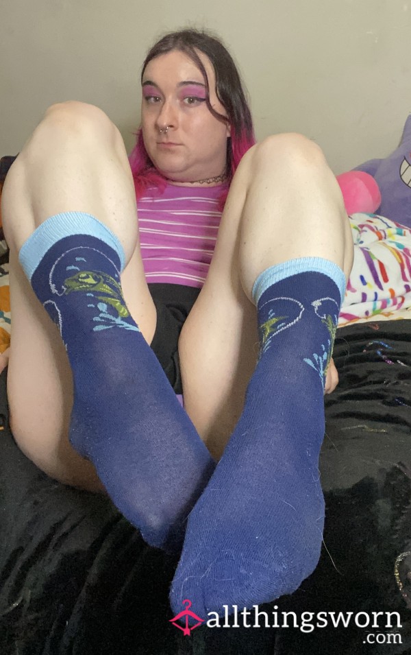 Something smells fishy? No! They smell like tgirl feet! These socks are starting to get a hole (fishing hole?) so want to give them one last wear before I get rid of them. Any takers? Reel it in, shoot me a message!
