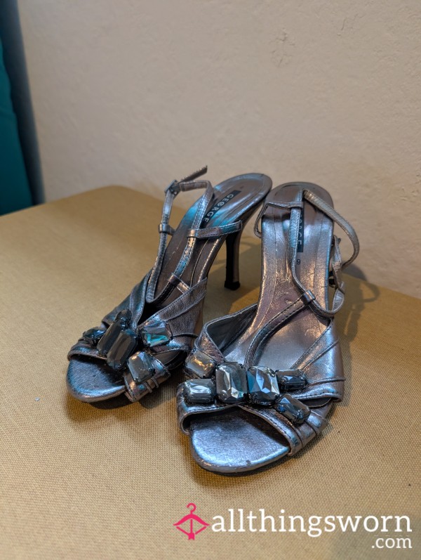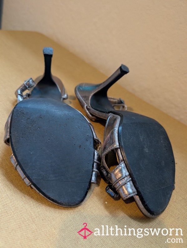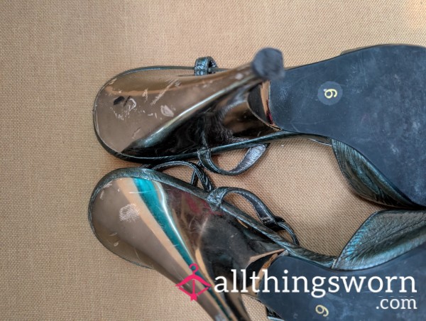 Very well worn wedge heels. Tan colour with ankle ties. Price is + shipping π¦....