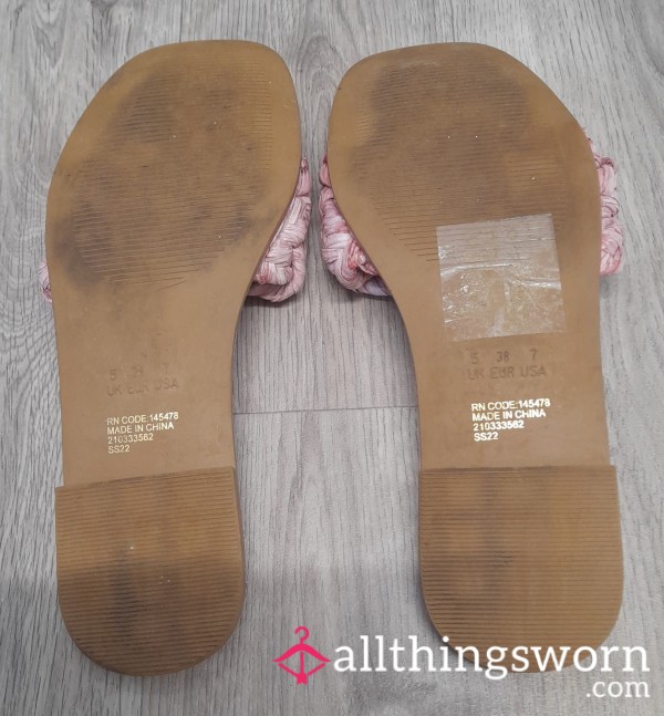 Well worn indoor shoes like sliders but the inner lining is fluffy so it captures all the sweat...