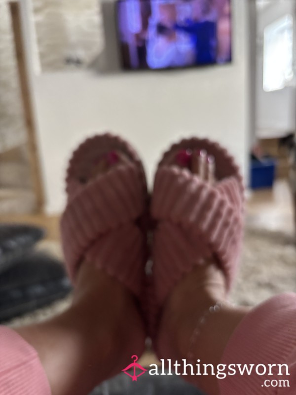 Heavily worn slippers for 4 years with and without socks inside and outside....