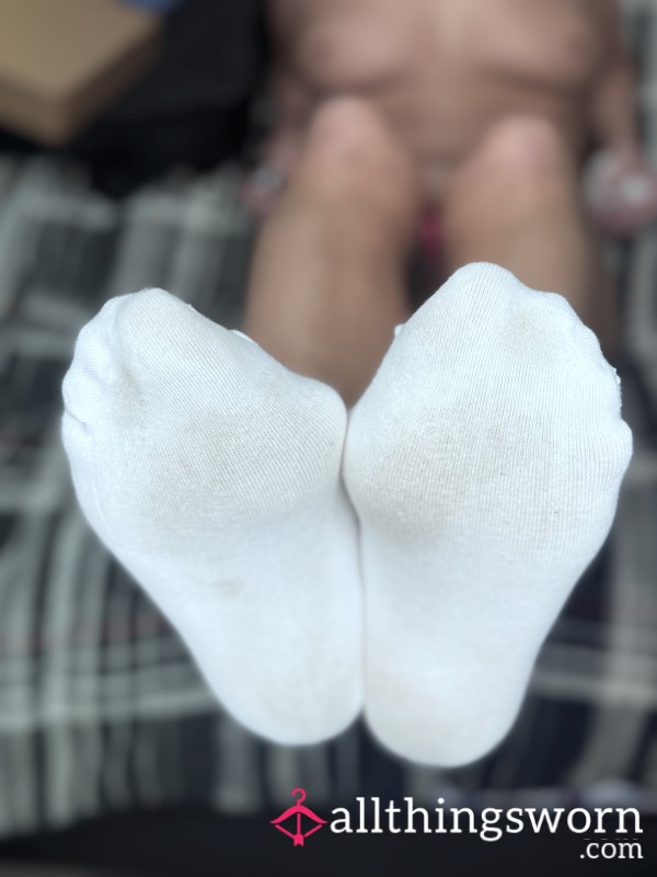 a sweaty pair of black trainers socks worn for 8 hours while working...