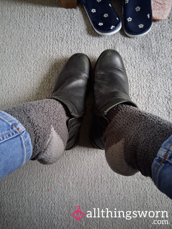 Brand new, bright white crew socks. That means I can get them as dirty and stinky as you'd...