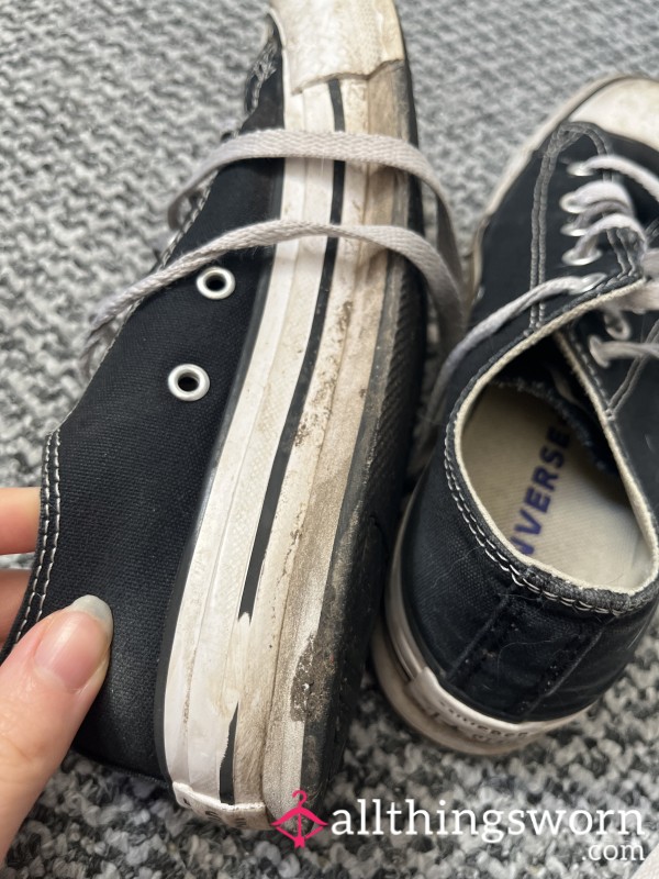These shoes have been worn day in and day out with the smell of me still lingering within them. You can get a taste of me with just one wiff or lick. With holes and cracks,what better way to get a taste of me than having the shoes of a queen.