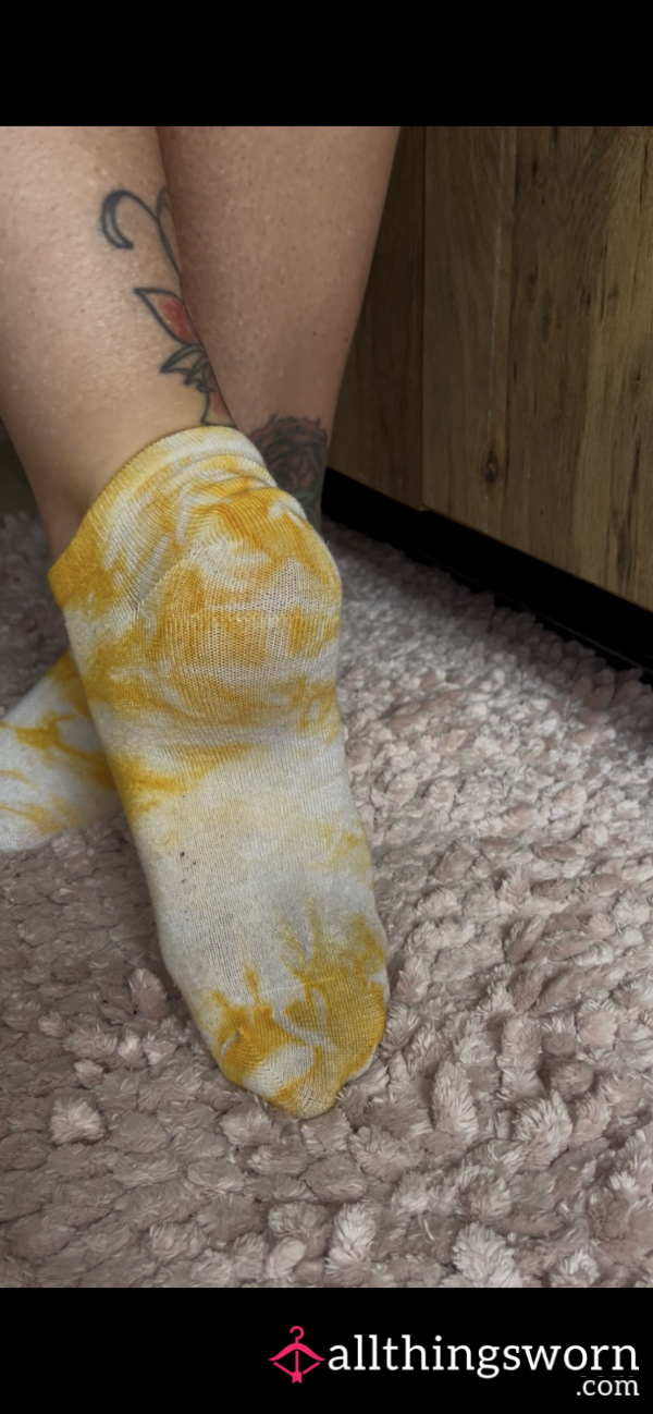 Well worn , with the perfect stink embedded deep within . These have had many sweaty days in their 4 years with me , I can show you just how sweaty on your two day wear with me . Come suck my toes and tell me how good they taste in these socks . Two days wear , proof of wear and domestic shipping included 💋