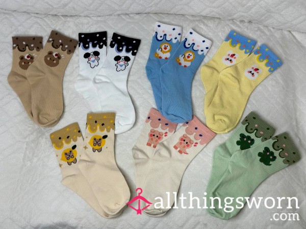 A simple pair of fresh white crew socks with lettering on the side :) They are quite comfortable,...