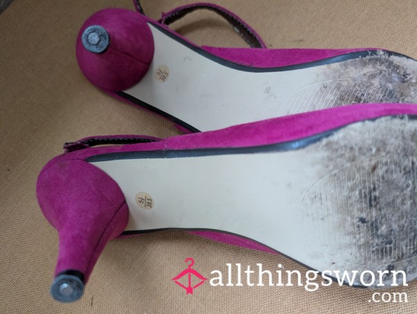 Trashed well worn pleaser heels. Nice toe prints, some dirt on the insole at the front / ball...