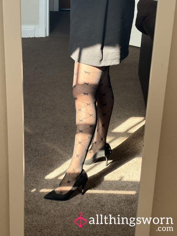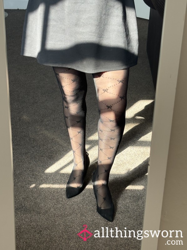 Black pantyhose worn all day at a music festival without no panties or socks. 3 pics of...