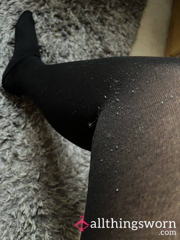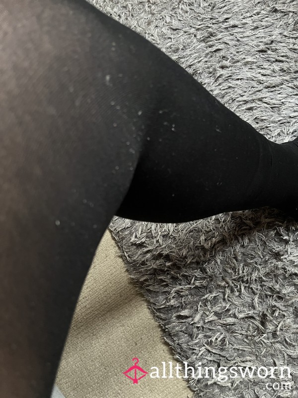 Xl black tights, worn all day, very bobbly on inner leg where they have rubbed together….