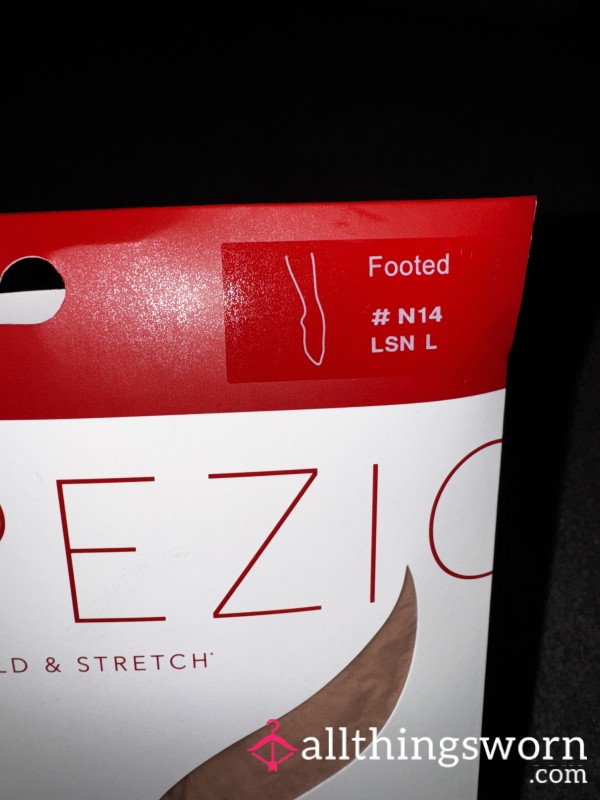 Shiny tights very nice on. Worn 24 hours add ins are extra....