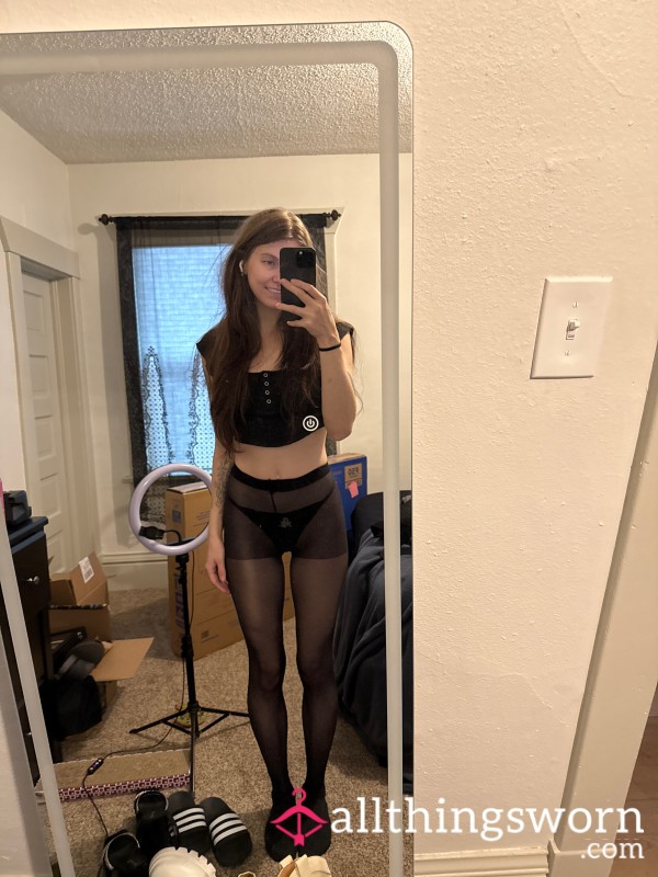 Black 20 denier nylon tights. Worn to perfection 🥰...