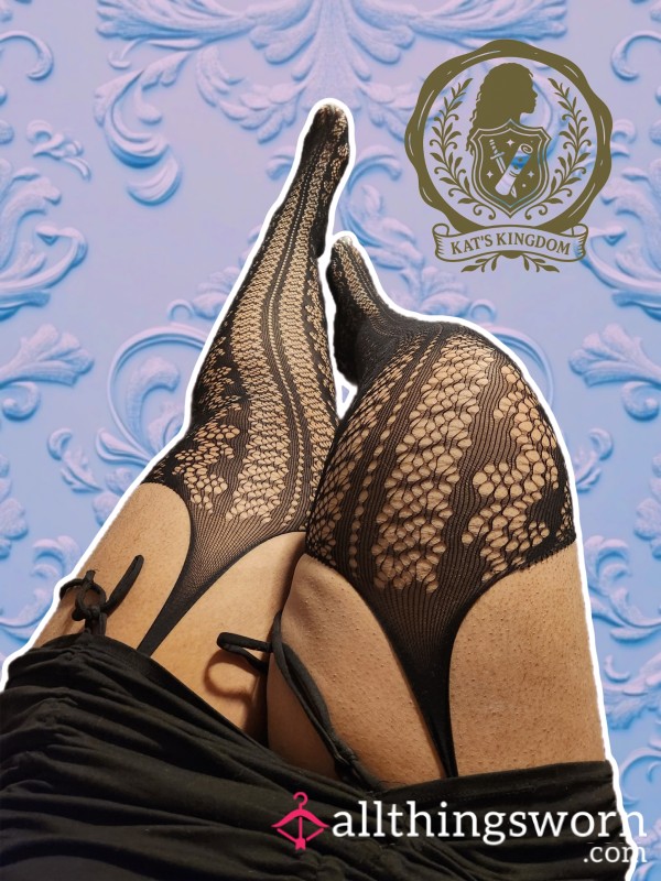 Black tights with polka dots.. one size.. 2 day wear.. with or without panties.. extra days and add...