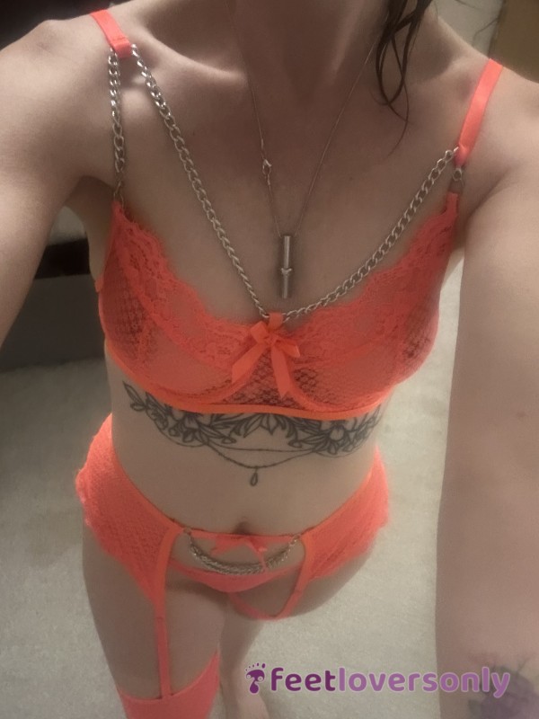 Pink s**y bralet and knicker set that my fat juicy pu**y has been sweating in😈...
